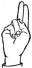 На ћирилици написано БОЈАН ДАНГУБИЋ састоји се из 13 слова [?]. Исписано ћириличном једноручном азбуком за глувонеме: